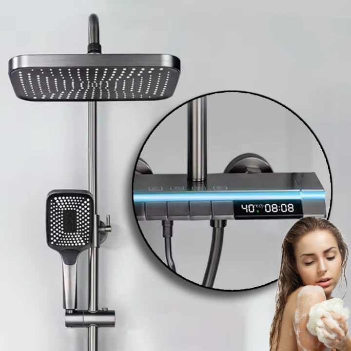 Dispositif exposé de robinet de douche:Avec barre coulissante