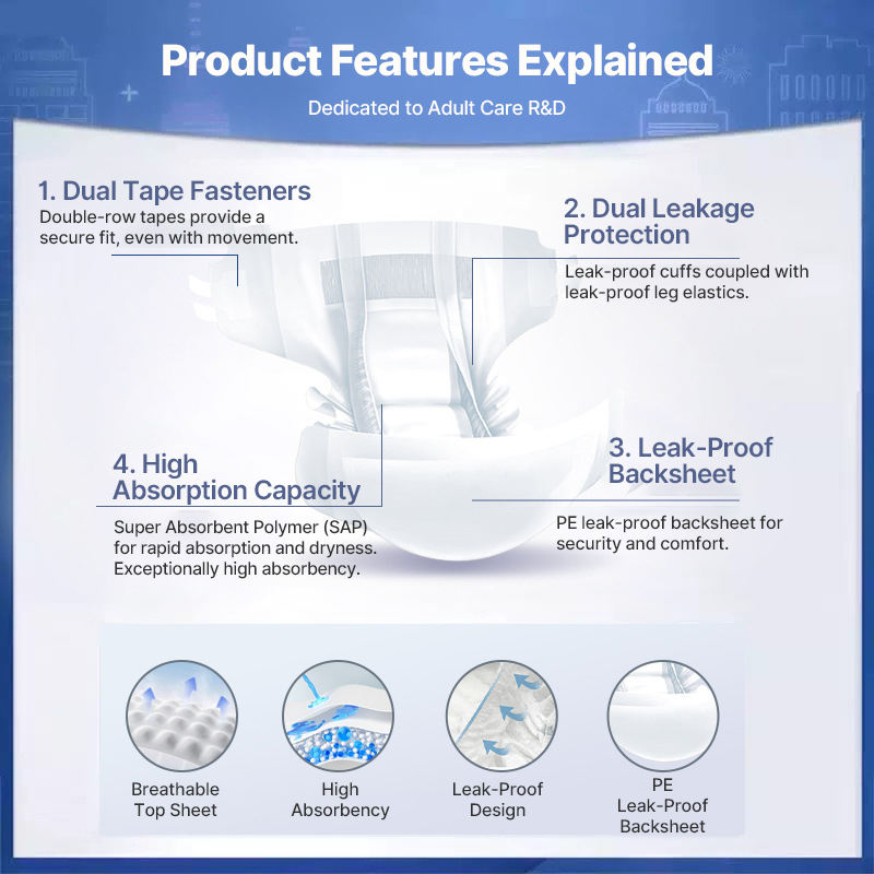Culottes absorbantes pour adultes Kaida, incontinence modérée, bande frontale refermable, taille XL, pour la récupération post-chirurgicale à l'hôpital