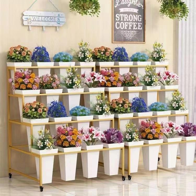 Chariot à 3 Étagères en Fer Robuste Personnalisable Kainice, Étagère Métallique Multi-Niveaux, Support à Fleurs en Fer Forgé pour Fleuriste, Événement