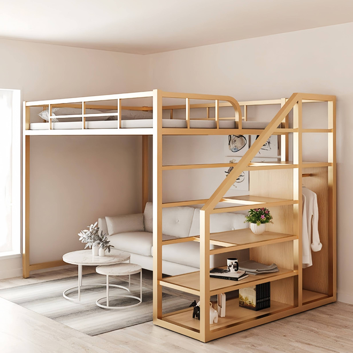 Lit superposé moderne Kainice en fer détachable à plusieurs niveaux pour adultes, avec escalier, rangement pour vêtements, lit superposé pour enfants en métal