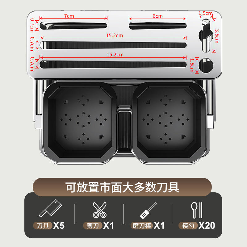 [Noir] Porte-couteau et support de rangement double porte-baguettes