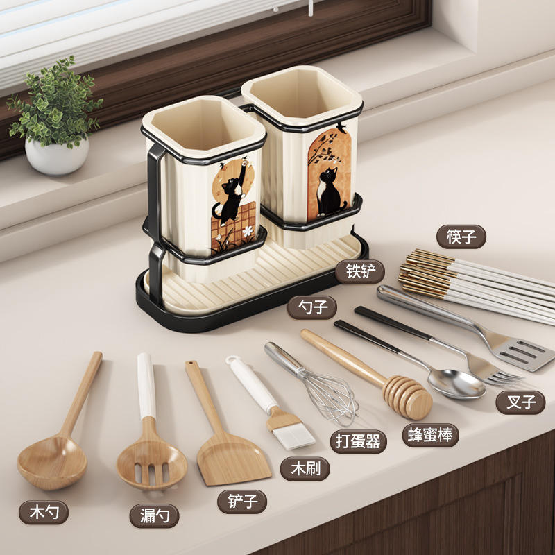 Organisateur de cuisine Kaiwang, double conteneur avec égouttoir, support de rangement multifonction pour ustensiles, utilisation sur comptoir