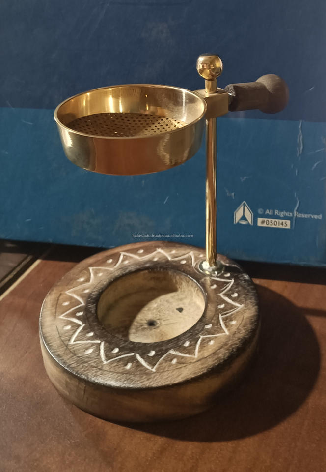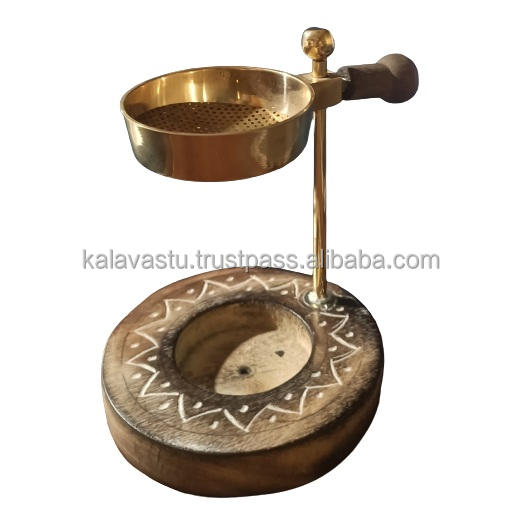 Kalavastu Brûleur d'encens fait à la main en résine dorée avec base en bois et tasse réglable-Arôme toutes saisons