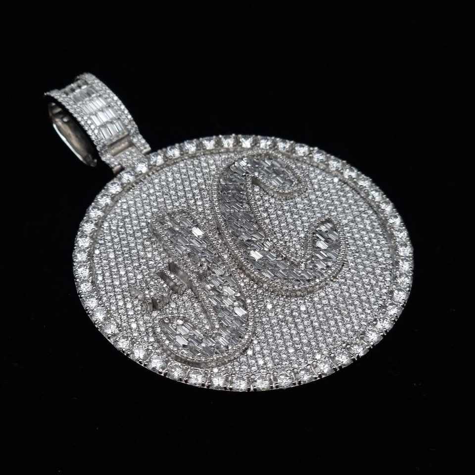Pendentif personnalisé Kaleido Factory en argent S925, style hip-hop, forme ronde, serti de moissanite VVS, lettre et nom