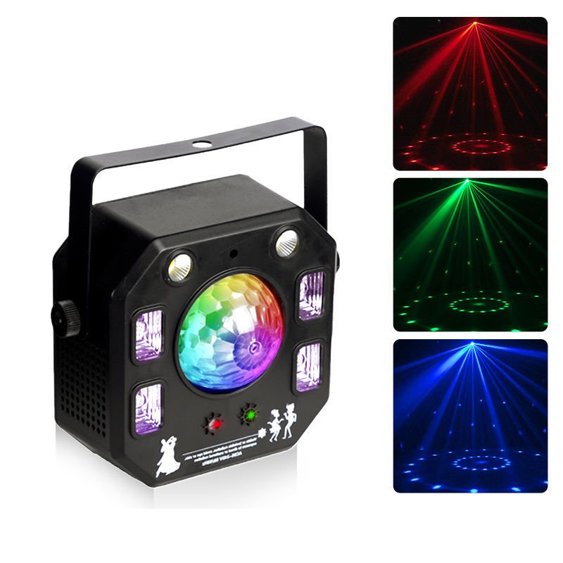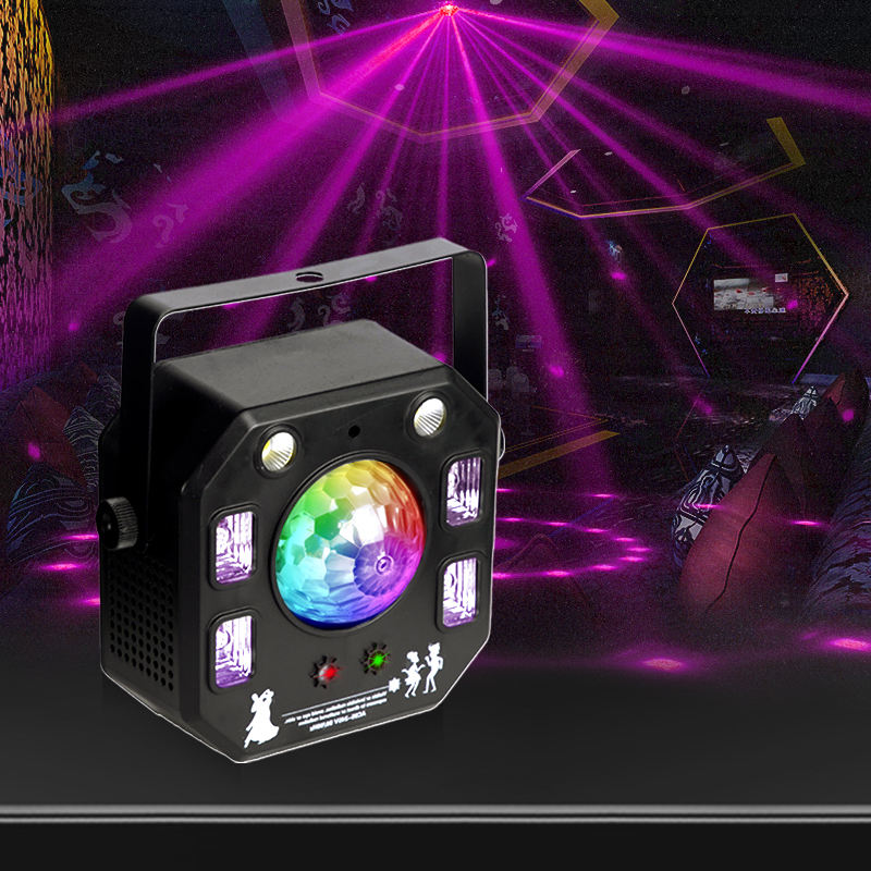Kaléidoscope Quatre-en-Un Lumière Disco RGBW LED Faisceau Lumineux Contrôle Vocal Flash et Rotation Laser Magic Ball