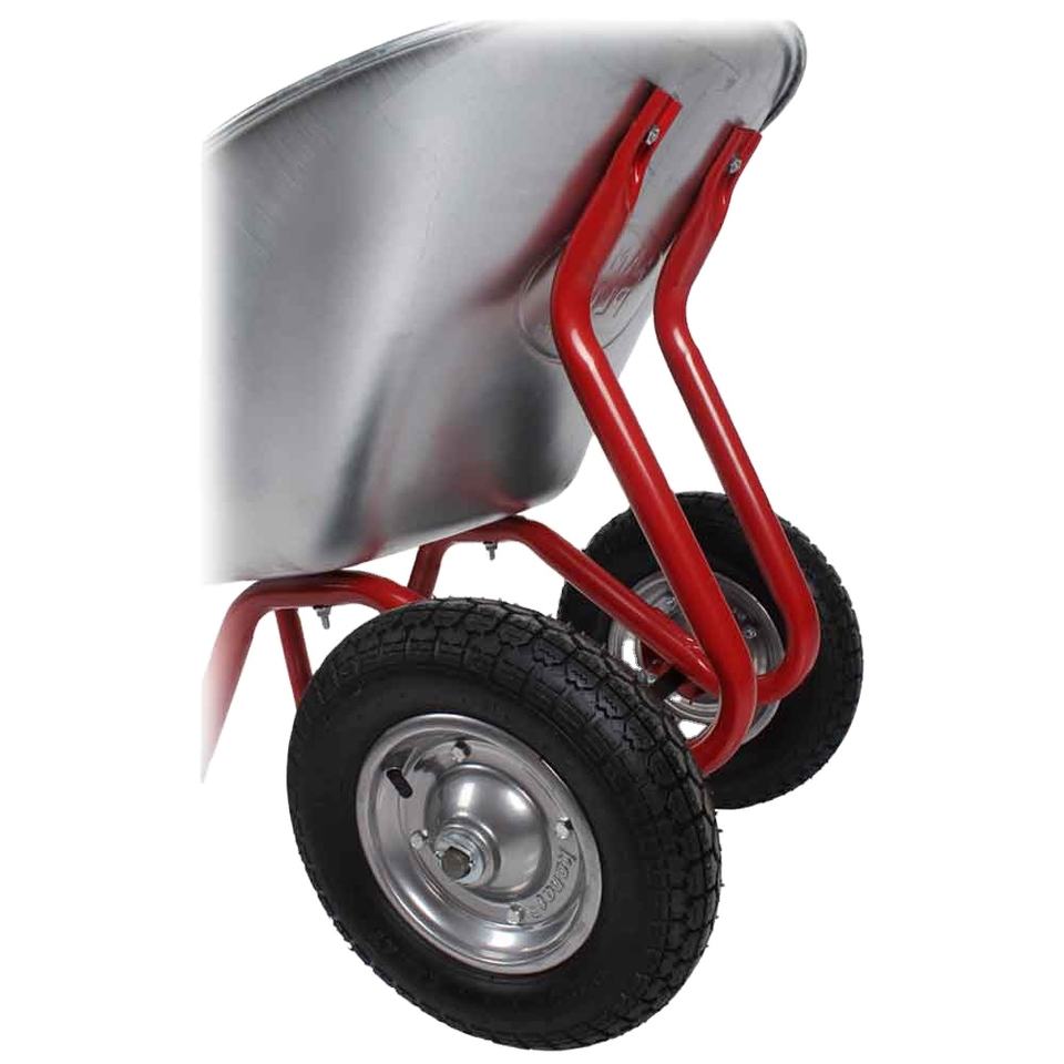 Brouette Kanat Plus galvanisée avec pneu tubeless, capacité 100L, usage industriel intensif, charge 150kg, manuelle, garantie 6 mois