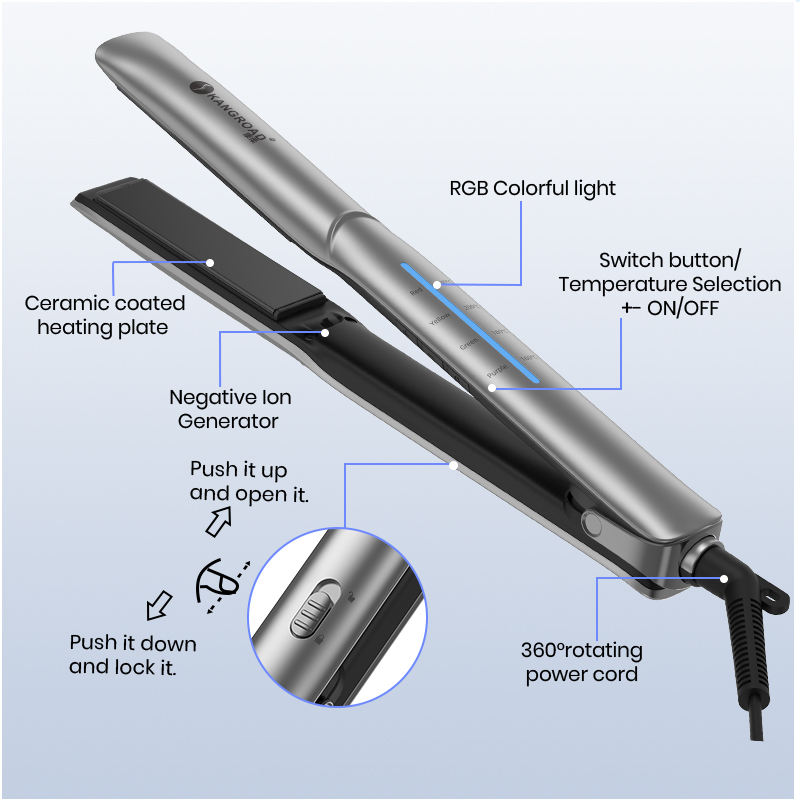 Usine KangRoad Fer à lisser à ions négatifs enduit de céramique de marque privée avec design personnalisé Fabricant professionnel de lisseur de cheveux