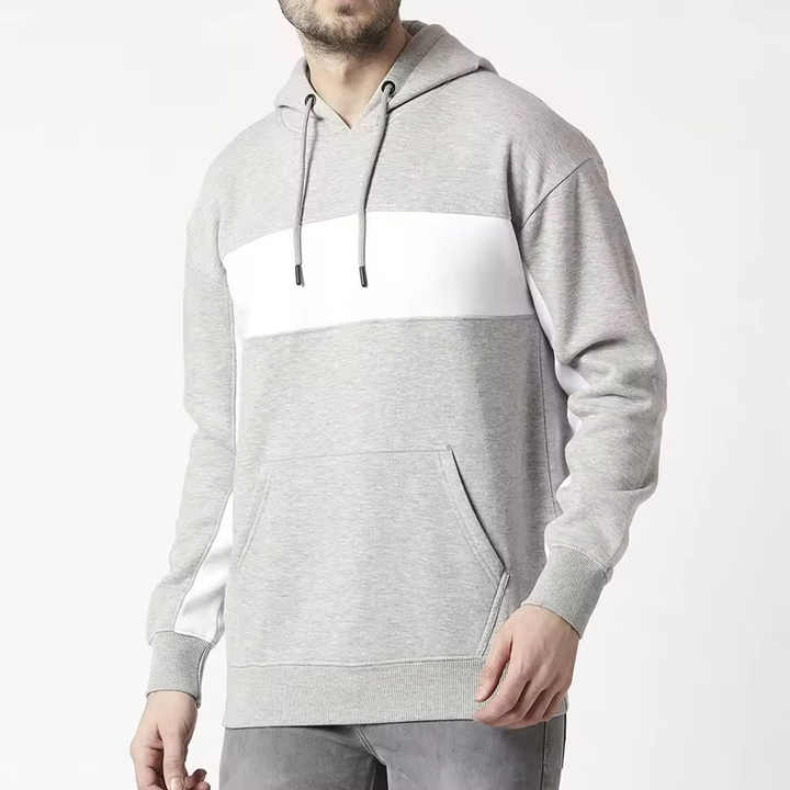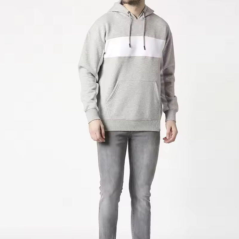 Sweat-shirts pour hommes à prix de gros, style poches kangourou avec panneau blanc sur le devant, manches régulières avec cordon de serrage et capuche