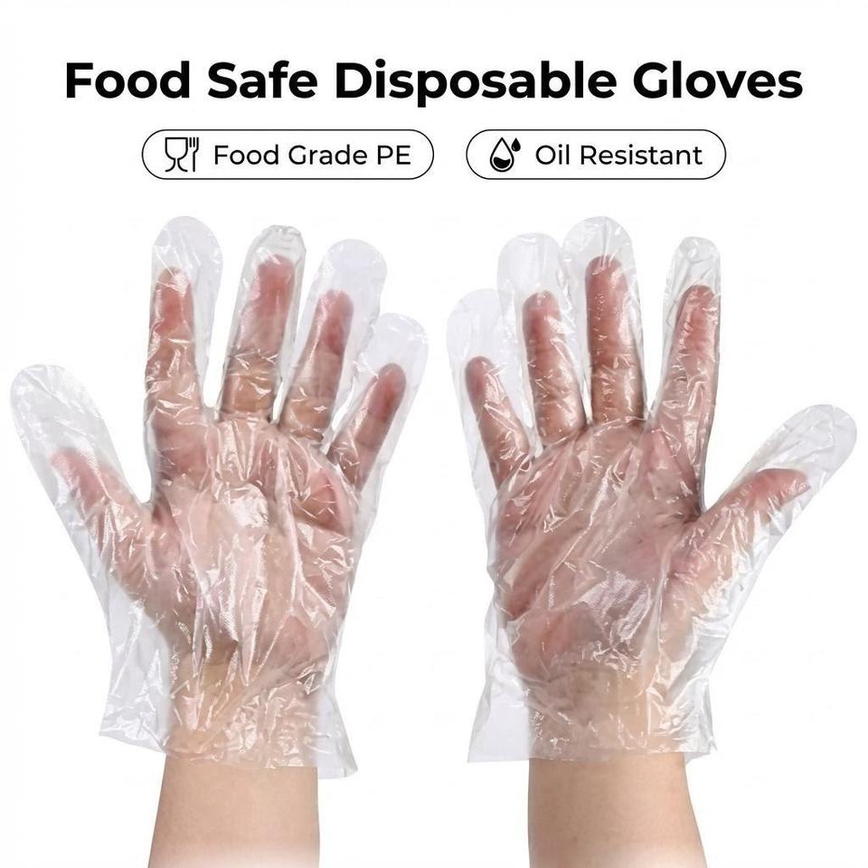 Gants en plastique Kangle, gants jetables transparents en PE, gants en plastique de qualité alimentaire, gants en poly transparents pour la cuisine, les salons de beauté