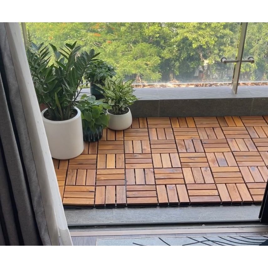 Kanhome T12A1 Modern 12-Slat Wood Deck Tiles 19mm Thickness Anti-Slip for Outdoor Pool Balcony Pathway Decor Hot Item Factory