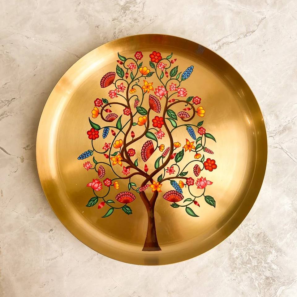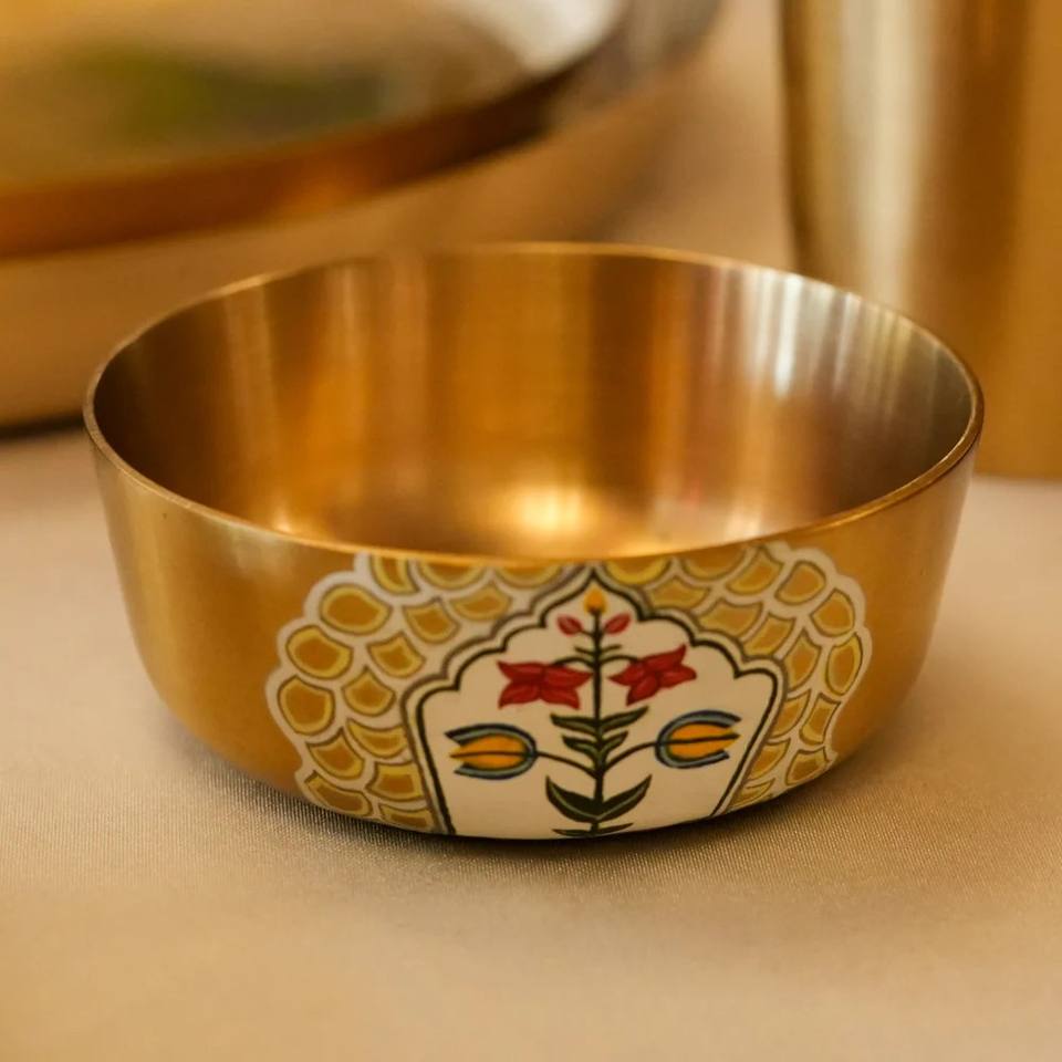 Service de table Kansa pour une personne, collection Kalpvriksha, vaisselle en bronze artisanale écologique, durable, résistante à la décoloration, du Punjab