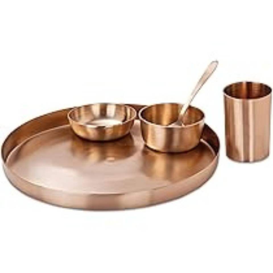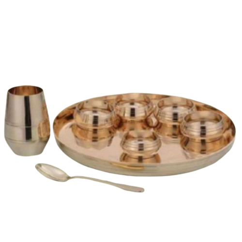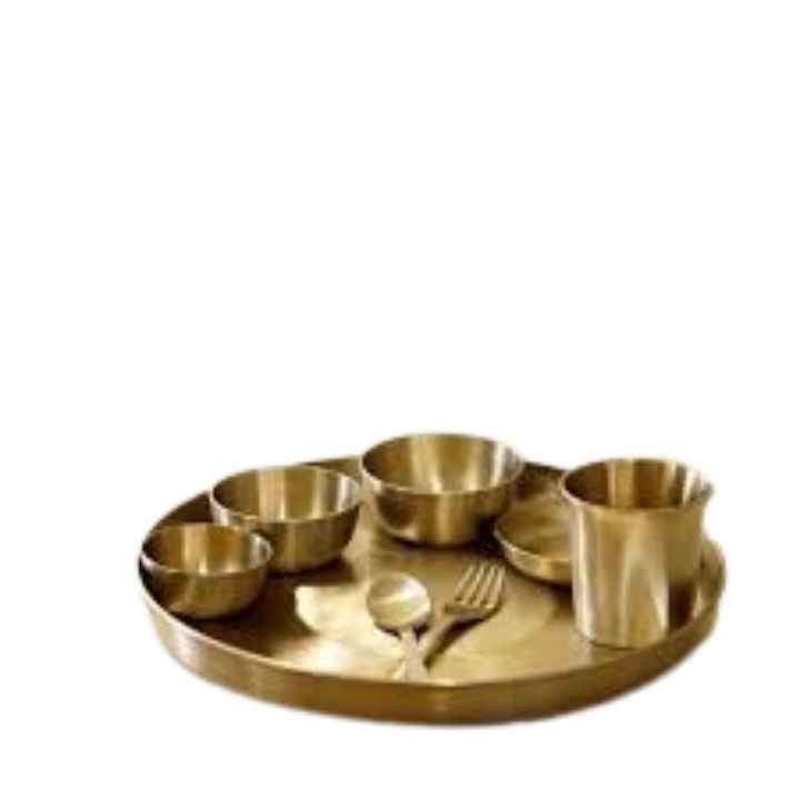 Service Thali de 8 pièces de vaisselle ayurvédique traditionnelle faite à la main en bronze pur Kansa, fini mat, ensemble de salle à manger sain et écologique