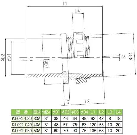 Prise murale Kansaikako 3 inclinaisons, filetée, traversante, droite, en PVC, 50A, avec pente KJ-021-050