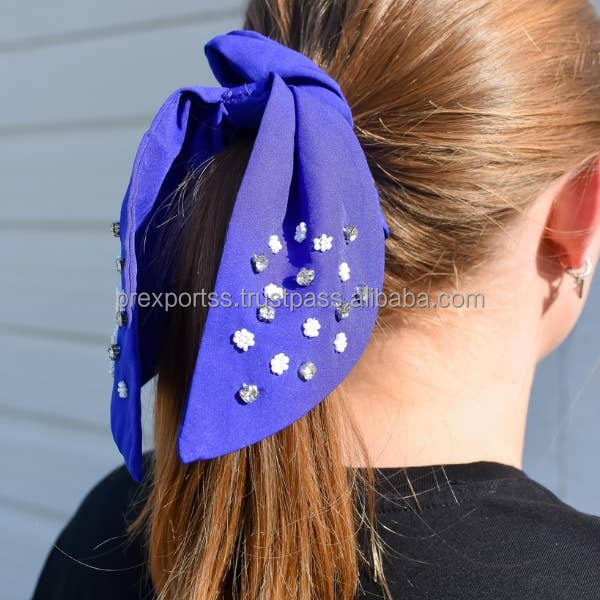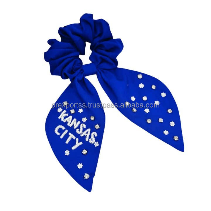 Écharpe bleue brodée Kansas City, chouchou perlé pour supporter, attache-cheveux pour filles, équipe d'école, fait main, écologique