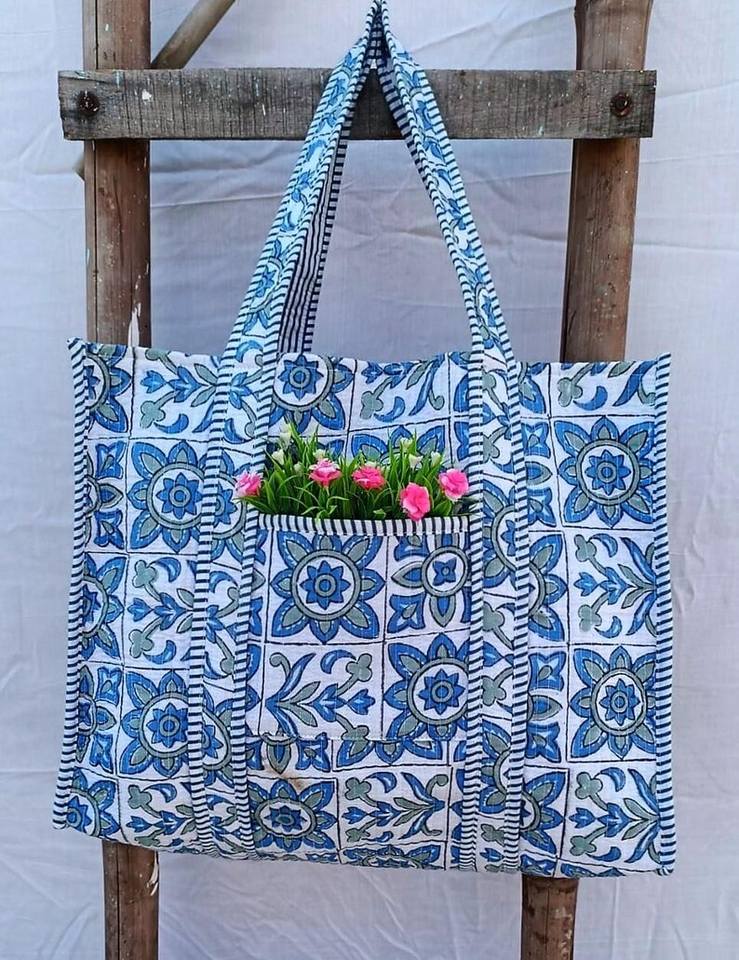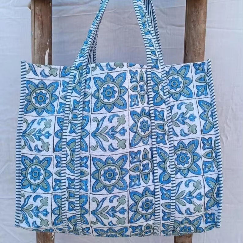 Sac fourre-tout en coton matelassé Kantha, imprimé floral réversible, écologique, pour le shopping, les voyages, sac à bandoulière