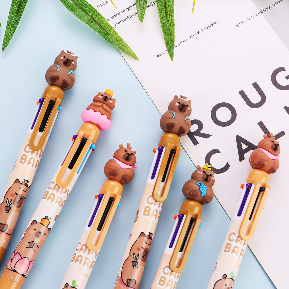 Kapibara Stylo à bille 6 couleurs rétractable Capybara mignon multicolore en une pression Stylo marqueur couleur étudiant