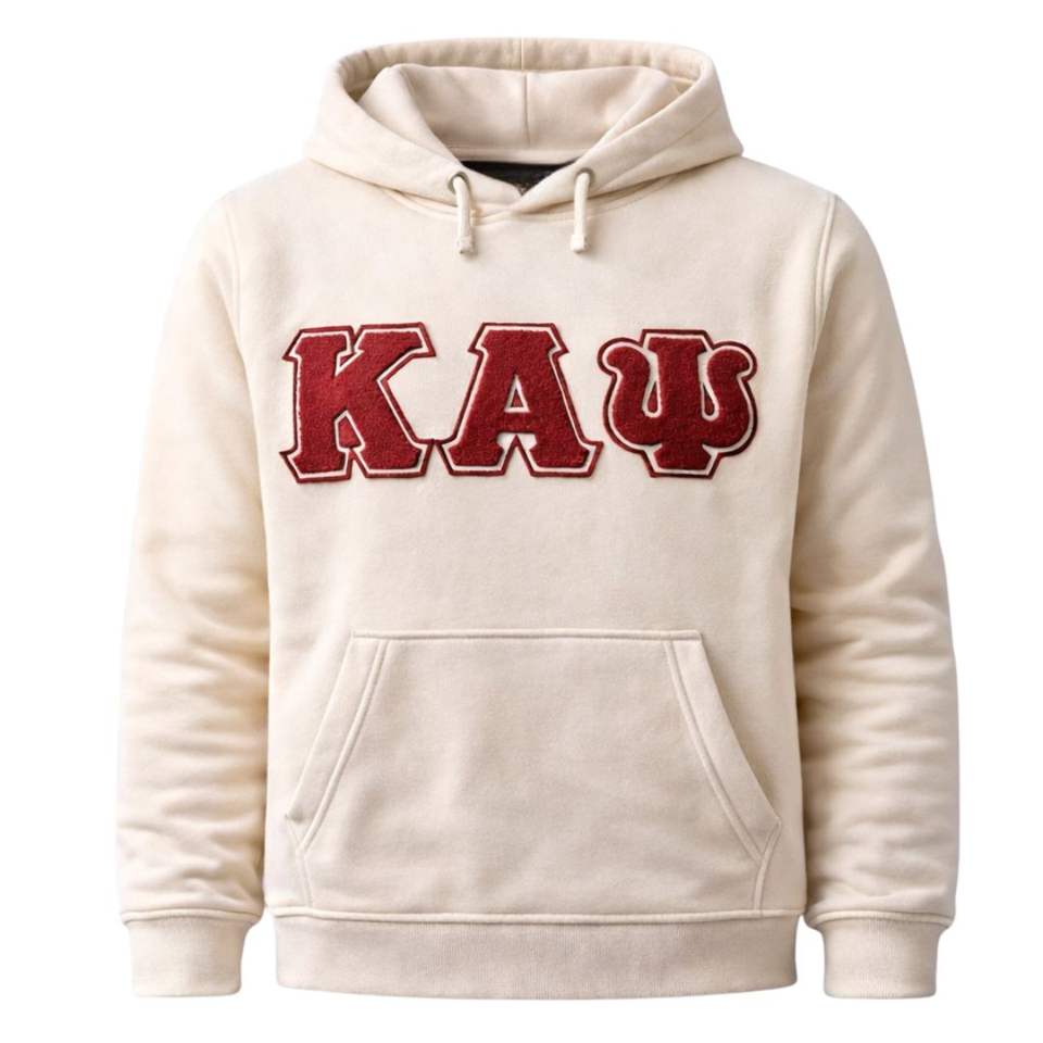 Kappa Alpha Psi Kream Chenille Hoodie True To Size Premium Fleece Embroidered Greek Letter Crest Classic Style