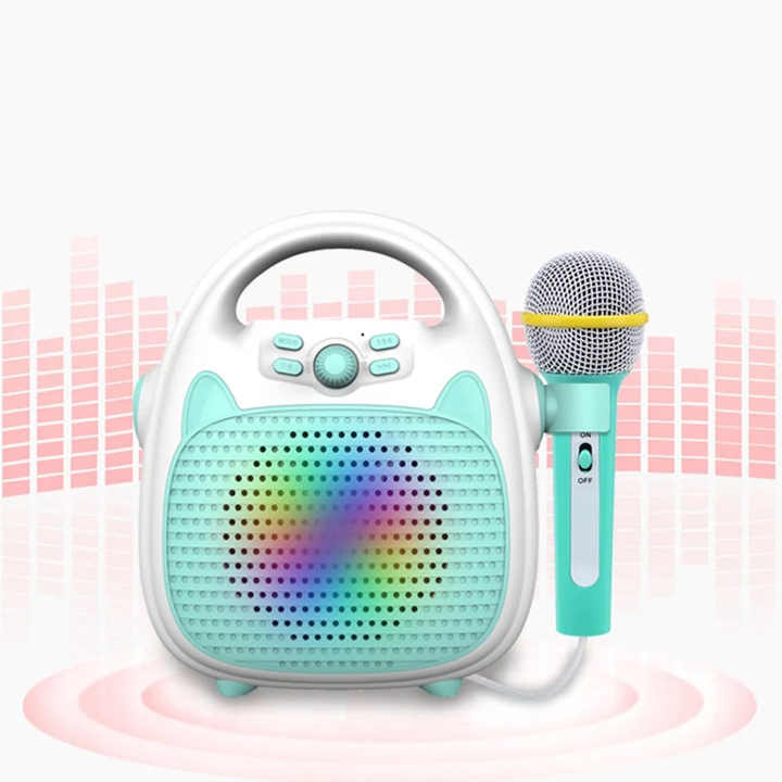 Machine Rechargeable USB pour karaoké, haut-parleur Portable, avec Microphone BT, carte mémoire, connexion USB, lumières pour garçons et filles
