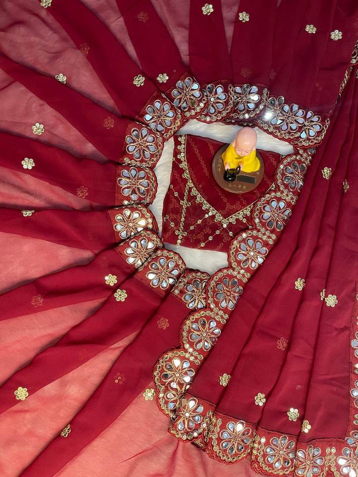 Sarees en rayonne de georgette douce multicolores spéciales pour le festival Karva Chauth, avec un haut à broderies lourdes, vêtements pour femmes, fête