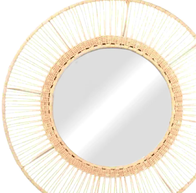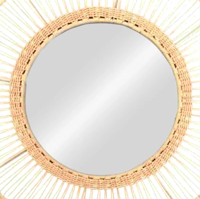 Kastara nouveau miroir en rotin décoration murale couleur noire forme de soleil avec dessin animé motif rond en bois