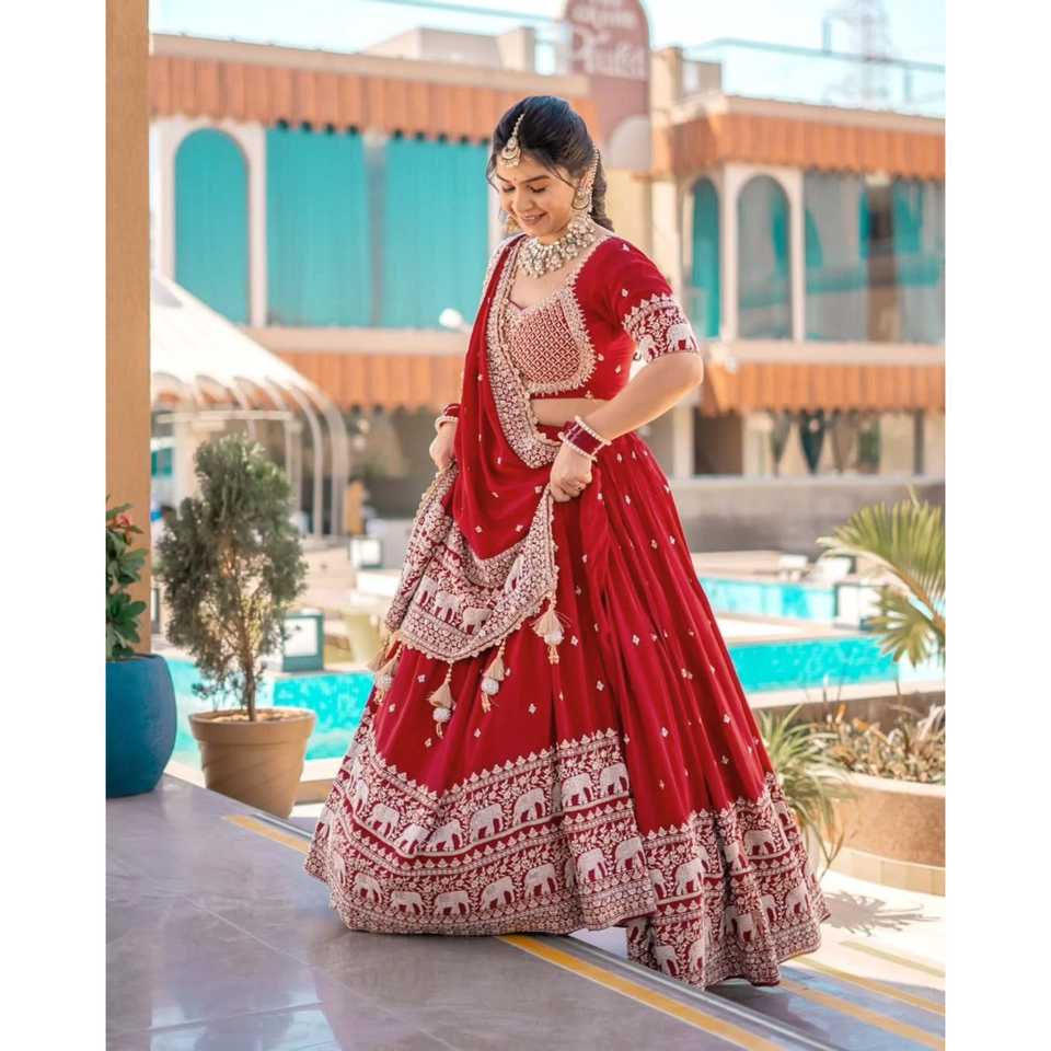 Kavya Fab Designer Broderie Rouge Indienne & Pakistanaise XL Lehenga Choli