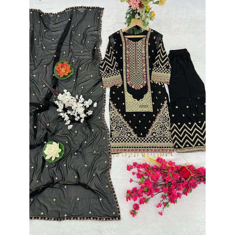 Kavya Fab Designer Women's Black Party Wear Size M Top-Bottom and Beautiful Dupatta Set