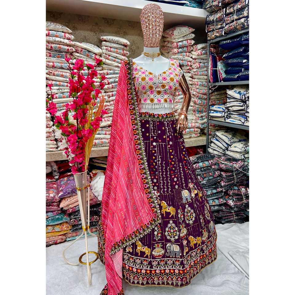 Kavya Fab Designer Lehenga Choli pour femme, tenue de soirée, violet, taille M, avec broderie élégante