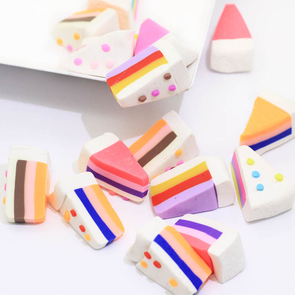 Kawaii 3D arc-en-ciel Triangle gâteau polymère argile alimentaire Figurine pour bricolage artisanat faisant Slime bricolage jouets gâteau breloques