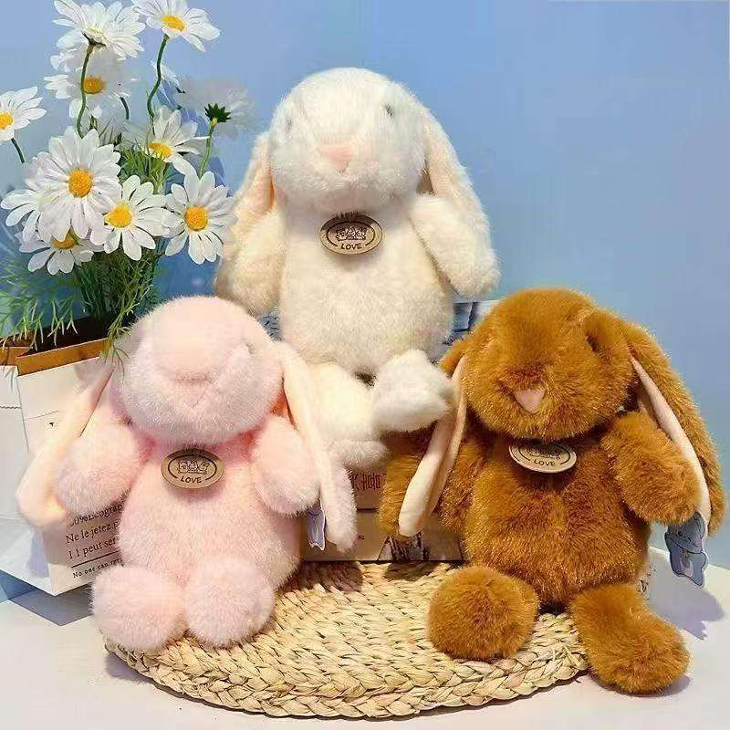 Peluches lapins à longues oreilles Kawaii en coton, jouets en gros pour machines à griffes d'arcade et designs personnalisés