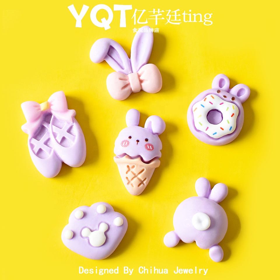Cabochons en résine à dos plat, motif lapin Kawaii de dessin animé, breloques pour slime, artisanat pour coques de téléphone, pinces à cheveux, bijoux, porte-clés et ornements miniatures