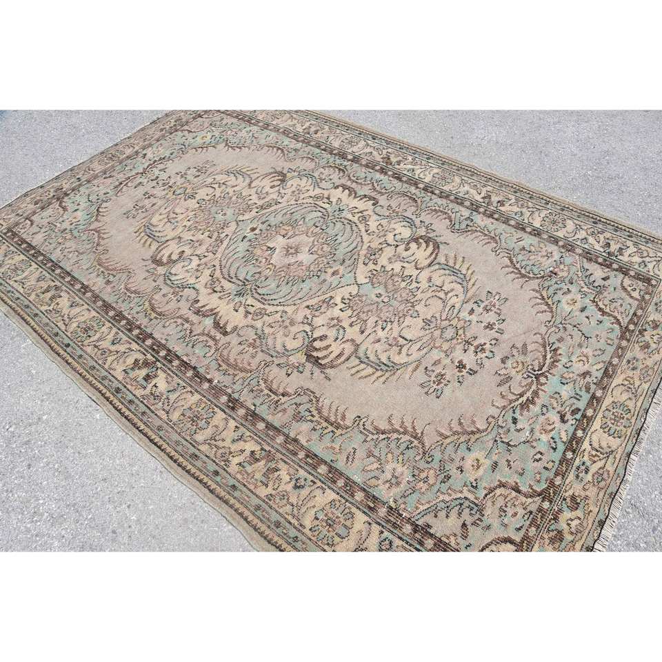 KayraHome Tapis turc vintage persan beige bleu 6,4x9,5 pieds Écologique Poils moyens Laine Support en latex Motif patchwork Classique