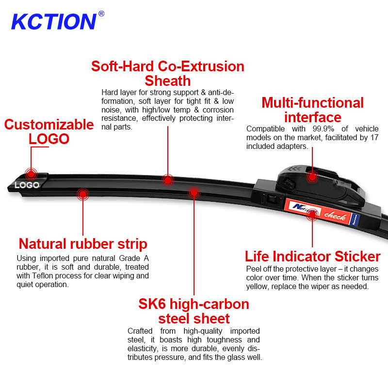 Essuie-glaces universels souples Kction en caoutchouc naturel avec garantie, 12 mois, 18 adaptateurs, pour la plupart des voitures, lame d'essuie-glace multi-plat