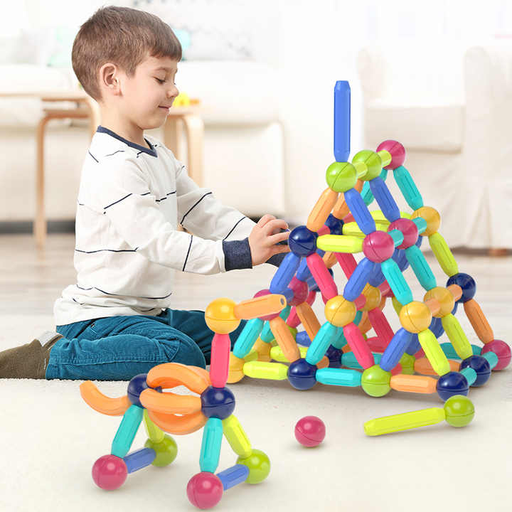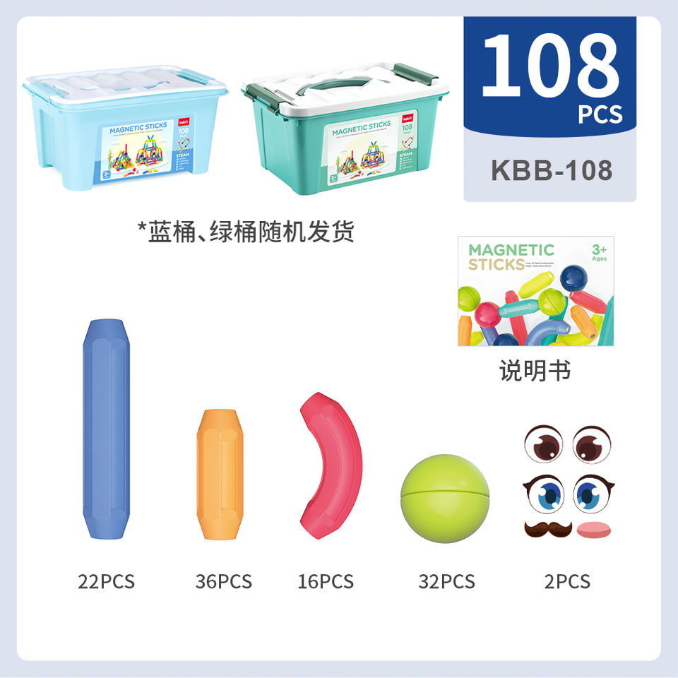 Kebo-Lot de 108 bâtons magnétiques, blocs boules et tiges, ensemble de construction, jouets éducatifs pour enfants de 3 ans et plus