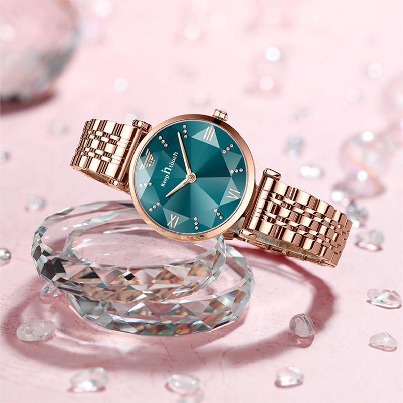 Montre à quartz pour femme Keep Touch, bracelet en acier inoxydable or rose, résistance à l'eau 3 bars, design élégant, verre minéral, fermoir pliant