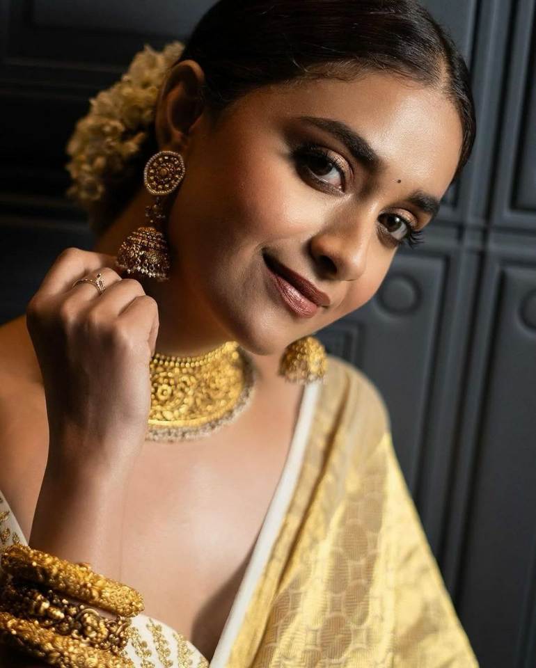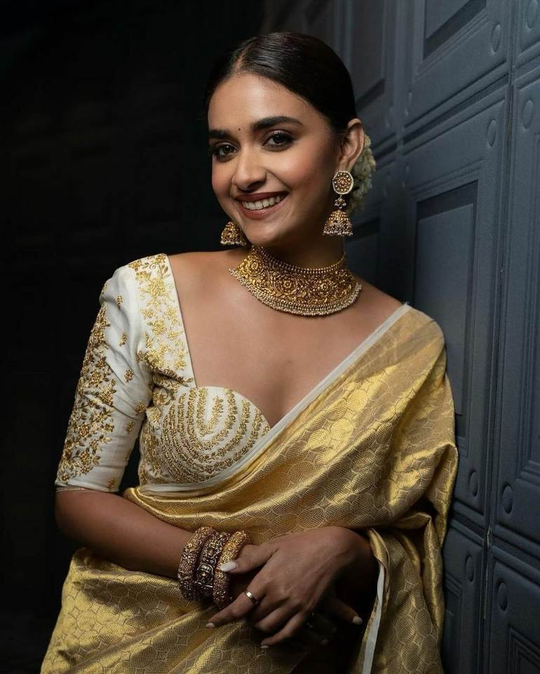 Keerthi Suresh Mam inspiré main bloc imprimé jaune couleur dentelle bordure travail doux Banarasi soie Saree pour mariage et fête porter