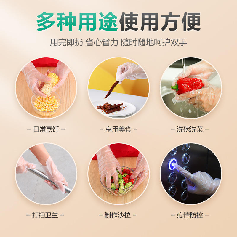 Gants jetables en PE Kefu, durables, adaptés à la restauration, à la cuisine, au lavage de la vaisselle, à l'usage domestique, de qualité alimentaire, épaissis, 100 unités