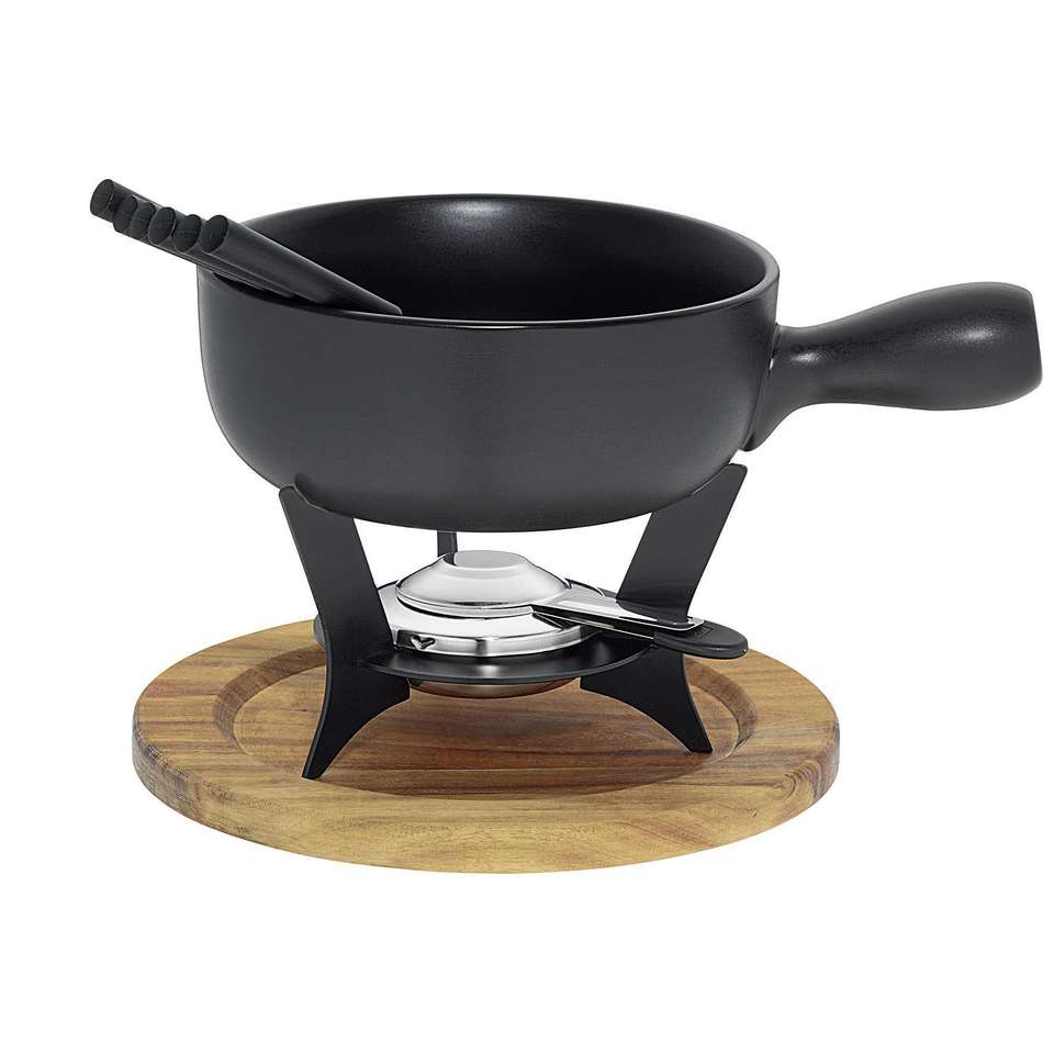 Ensemble de fondue au fromage Kela en fonte de fer avec support en bois 21 cm noir 10 pièces
