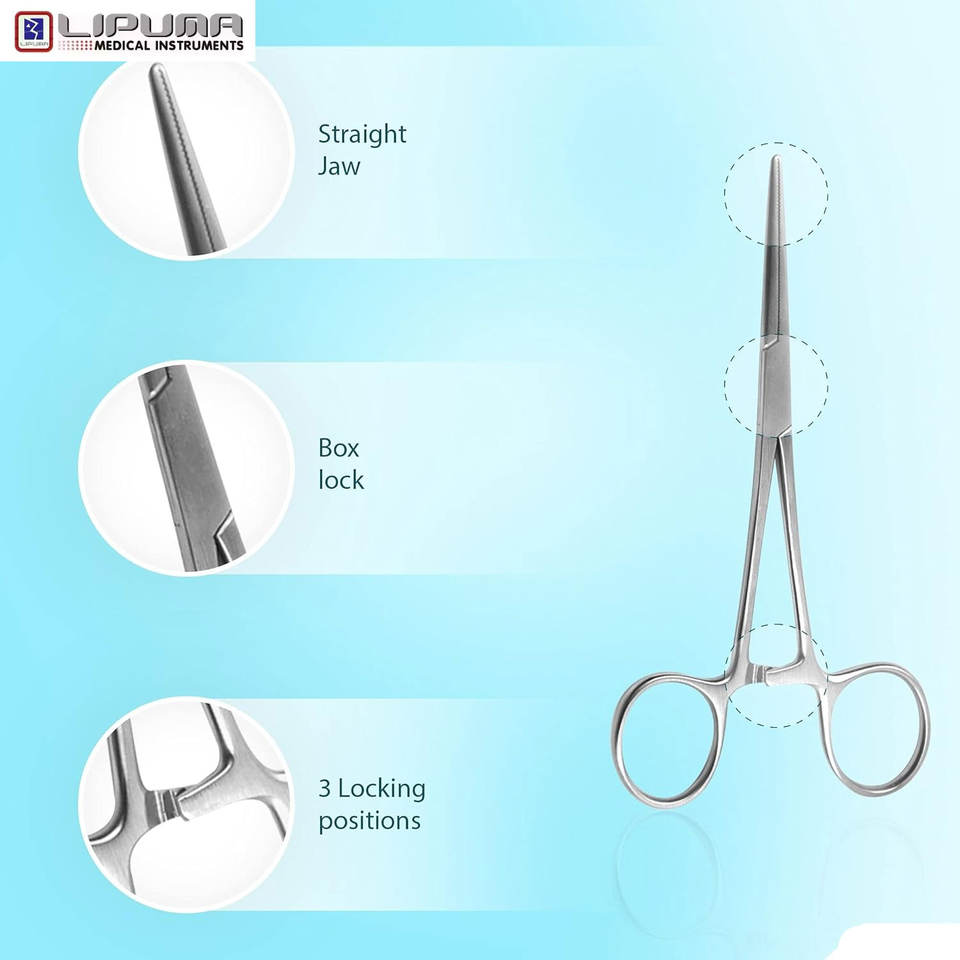 Kelly 6.25 pouces Instrument de chirurgie manuel pince à artère droite en acier inoxydable avec cliquet à poignée annulaire à mâchoires dentelées incurvées