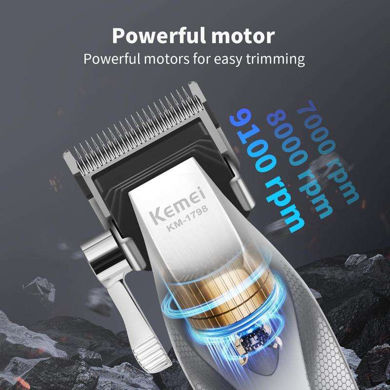 Kemei Km-3023-702 Real Matel Hosting DLC Coated Blade Hair Detail Clipper Wireless Base USB Charger Dock 9000RPM Hair Trimmer