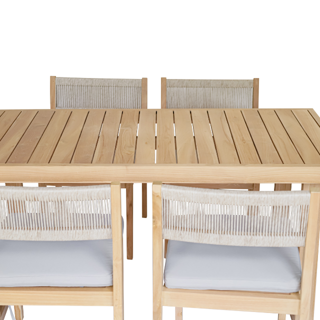 Ensemble de meubles de restaurant Kenzo, style rustique, chaise d'appoint de salle à manger d'extérieur, bois de teck avec dossier en corde, en provenance d'Indonésie