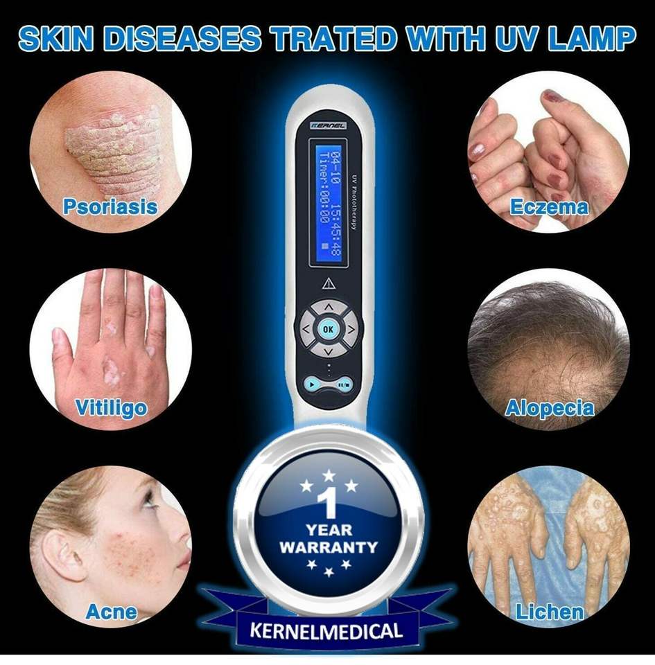 Lampe de photothérapie UVB portable à main pour usage domestique Kernel Uvb KN-4003B/BL, bande étroite 311 nm, pour vitiligo, psoriasis, eczéma