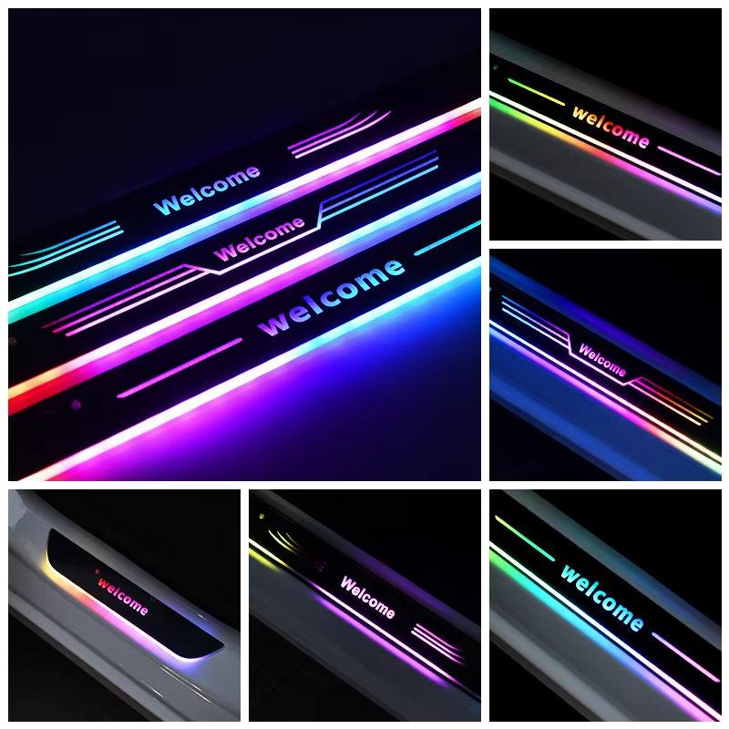 Kevanly Lumière de bienvenue personnalisée avec logo multicolore pour seuil de porte de voiture, lampe d'ambiance intérieure, pédale, accessoire de décoration automobile DC 5V, garantie 1 an