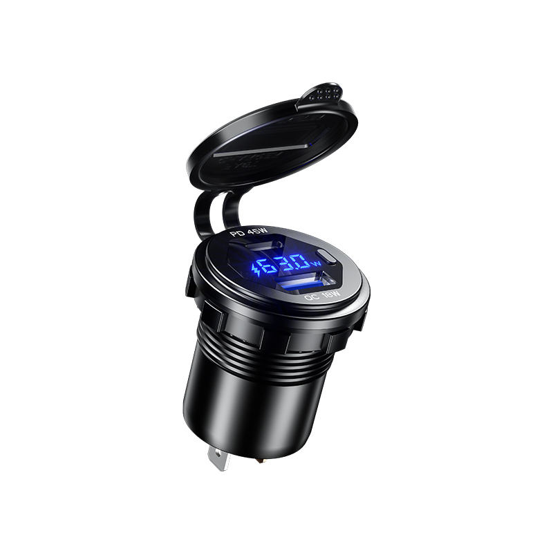 Kewig Chargeur de voiture LED double USB en aluminium 45W personnalisé avec type C et 2 autres ports Charge rapide QC3.0 pour voitures bateaux UTVs