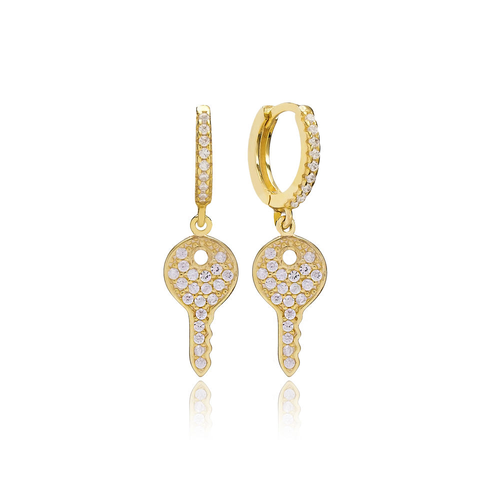 Key Design Zircon Pierre Dangle Boucles D'oreilles En Gros Turc 925 En Argent Sterling Fabriqué À La Main Fine Jewelry pour Femmes