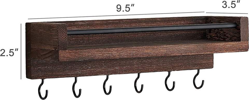 Porte-clés pour mur, 9.5 "X 3.5" X 2.5 "Petite étagère flottante en bois rustique avec 6 crochets Présentoir décoratif Porte-clés pour la vie