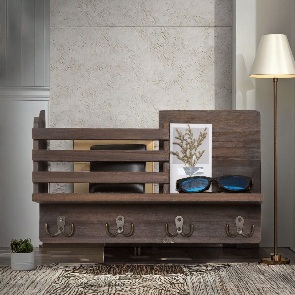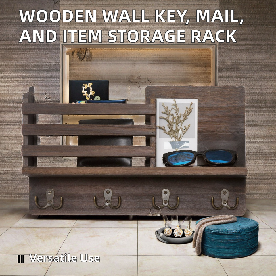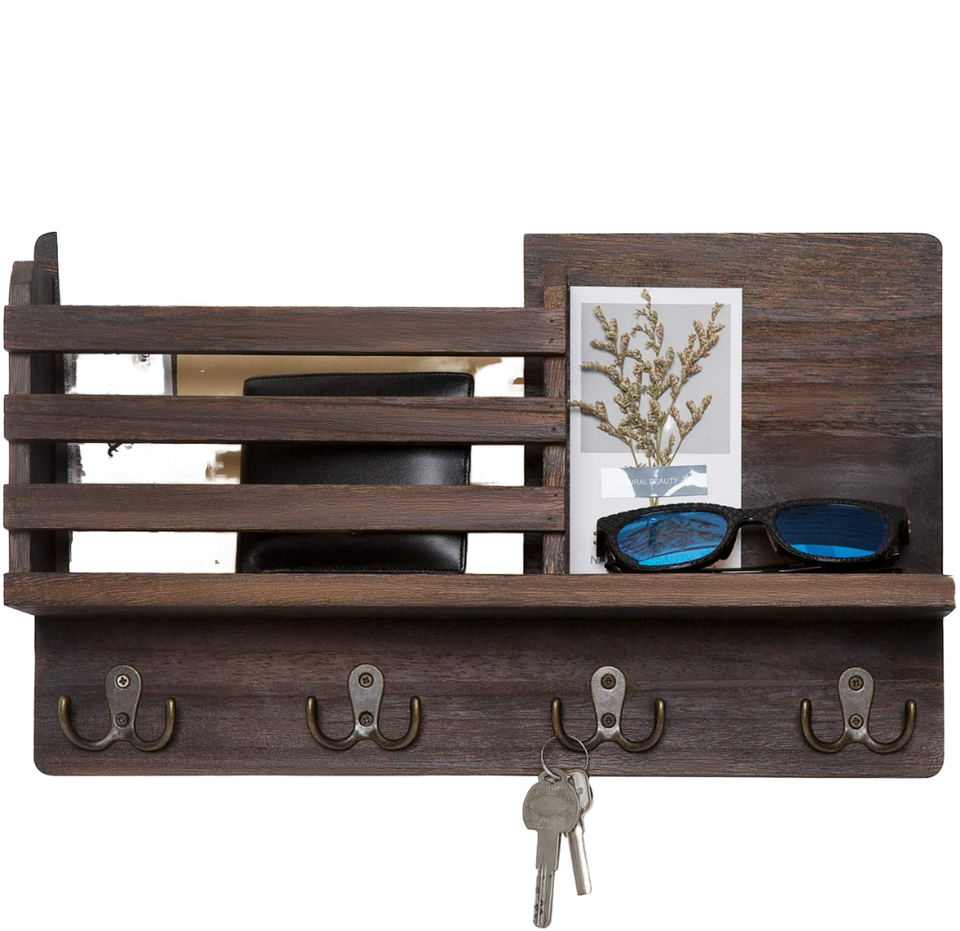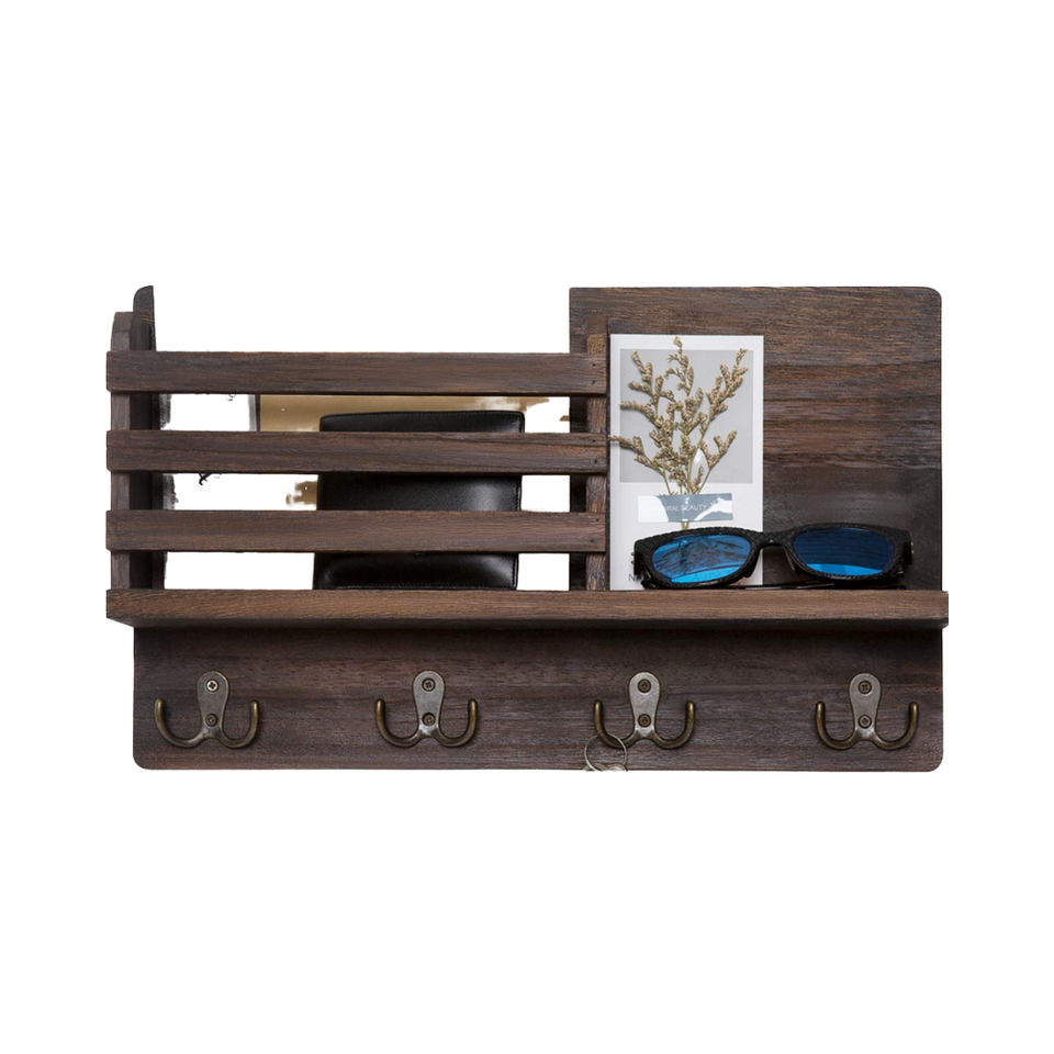 Porte-clés mural avec étagère, porte-clés en bois rustique, organisateur de courrier, crochets pour clés, manteaux, laisse de chien, lettres