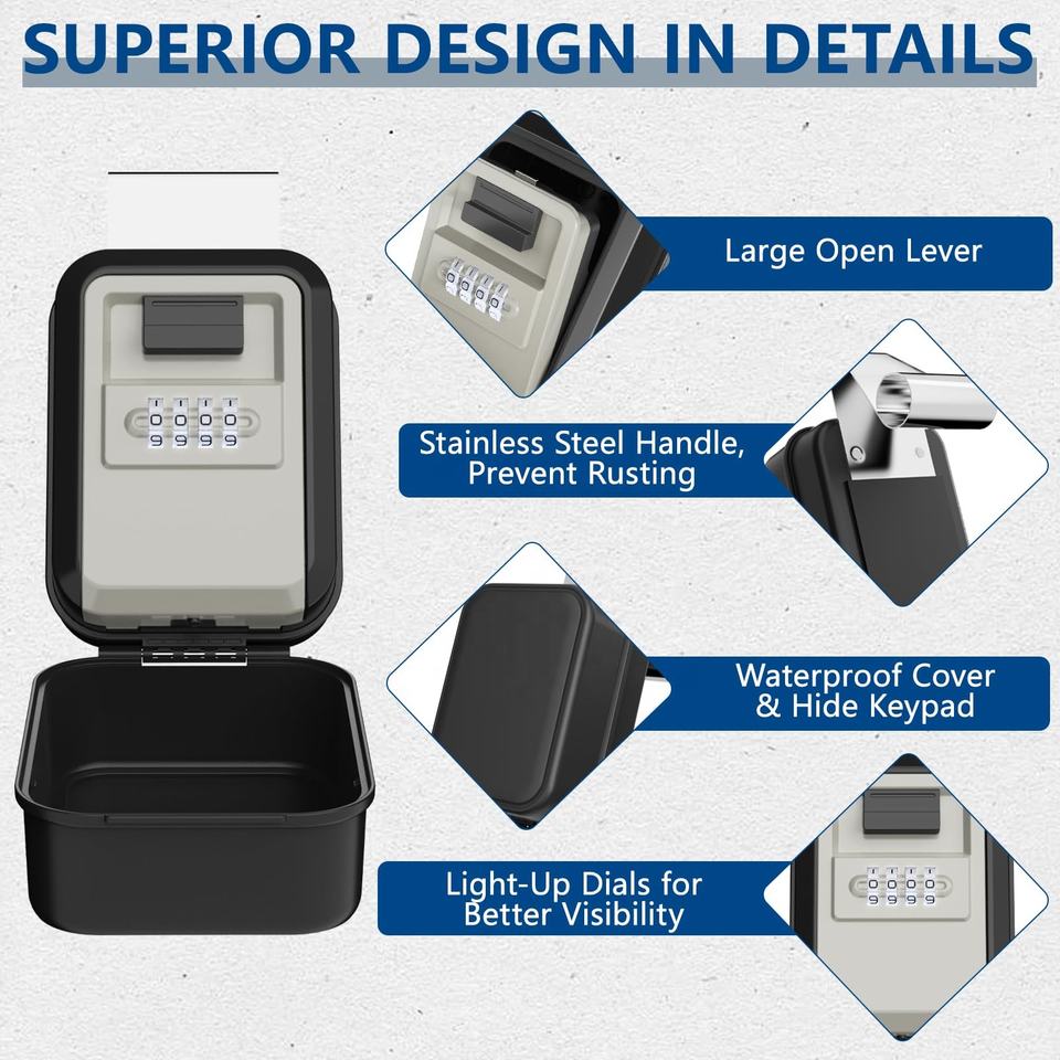 Boîte à clés étanche à fixer au mur, boîte à clés avec code, boîte à clés à combinaison à 4 chiffres, coffre-fort de sécurité, boîte de rangement pour clés