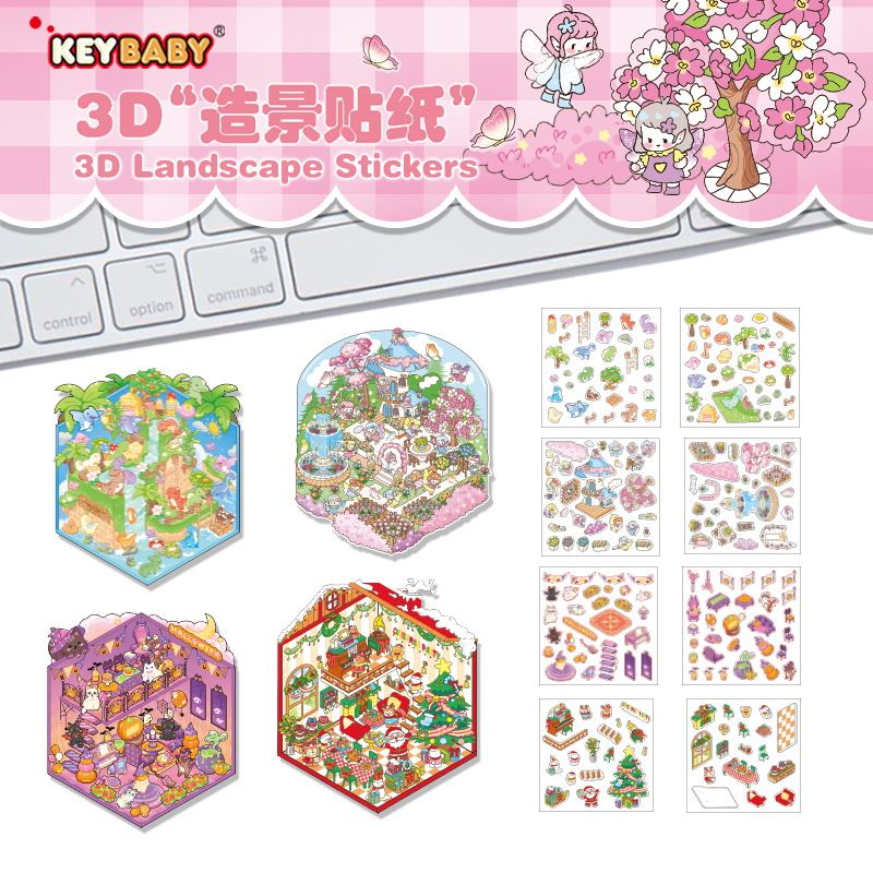 Autocollants 3D réutilisables en PET Keybaby – Fille amusante jouant avec ses mains – Décoration DIY pour fêtes, anniversaires, murs – Stickers créatifs à thème