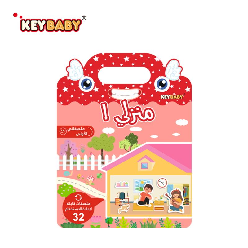 Livre d'autocollants en gel réutilisables personnalisés Keybaby avec poignée, motifs éducatifs colorés amovibles, mots en version arabe, échantillon gratuit
