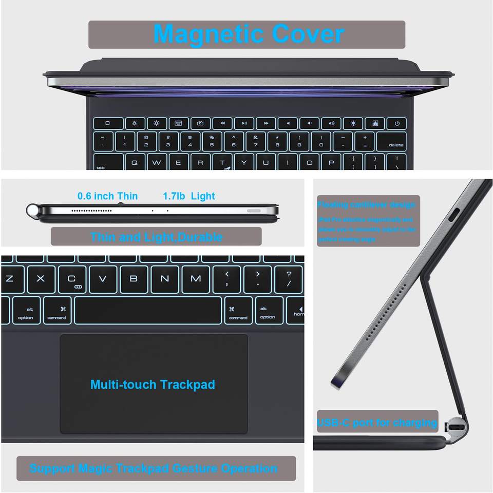 Étui clavier pour iPad Air 13 2024 et iPad Pro 12.9 pouces 2022-6th / 2021-5th / 2020-4th / 2018-3rd Generation Magic Keyboard